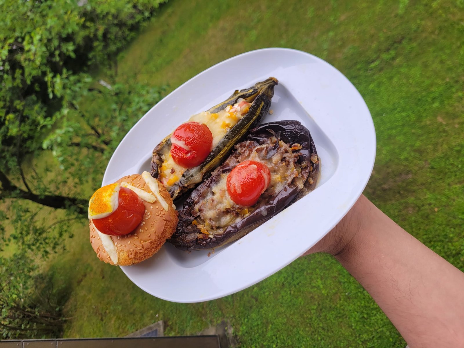 100 große Aubergine(n) 12.500 g Zwiebel(n) 75 Knoblauchzehe(n) 10.000 g Tomate(n), geschält, aus der Dose 7.500 g Champignons 12 ½